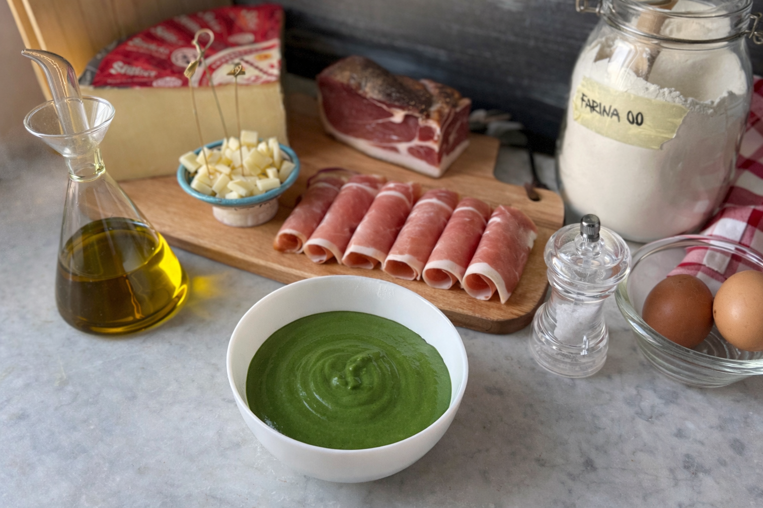 1️ Affetta lo Speck Alto Adige IGP e taglia a cubetti il Formaggio Stelvio DOP, metti da parte.